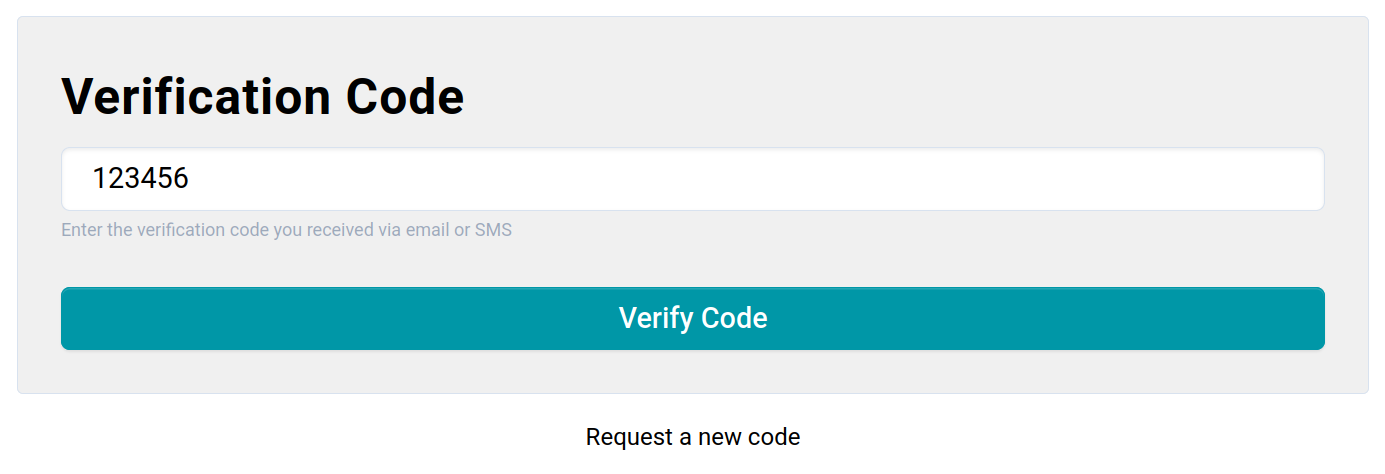 After requesting the code and entering it from the email