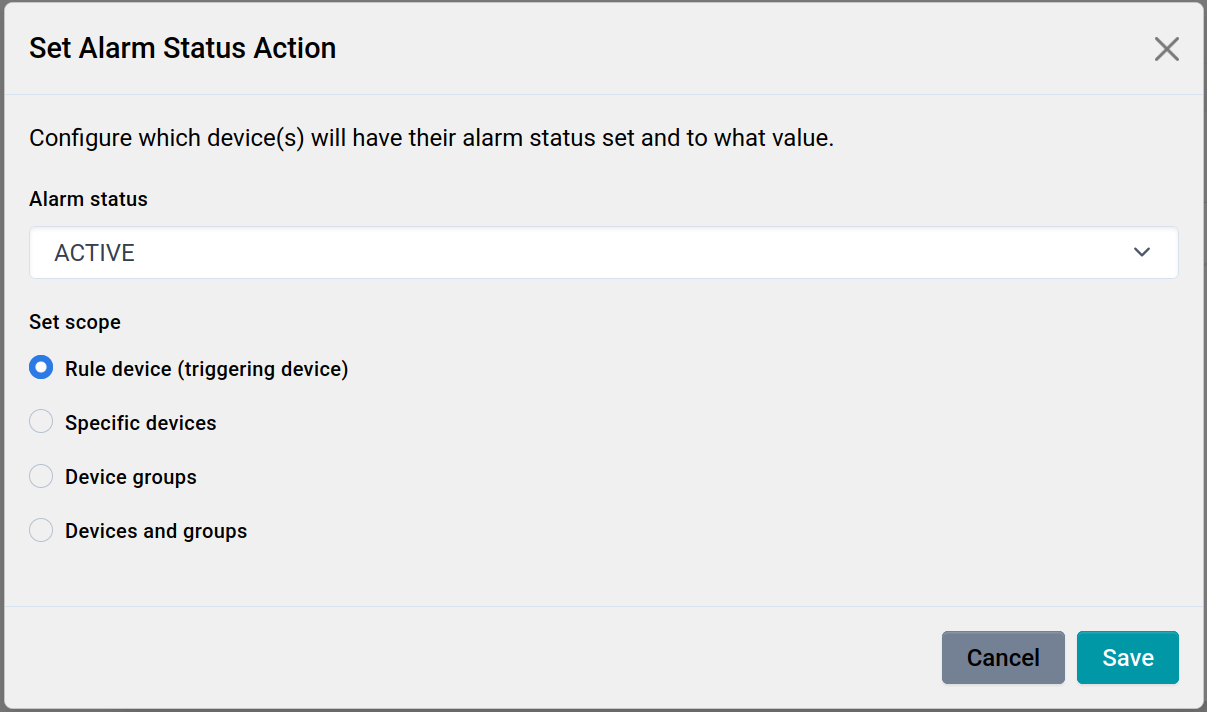 También puede cambiar el estado de Alarma para un dispositivo específico o un grupo de dispositivos.
