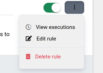 Aquí puede deshabilitar la regla usando el interruptor, ver su historial de ejecución, editarla o eliminarla.