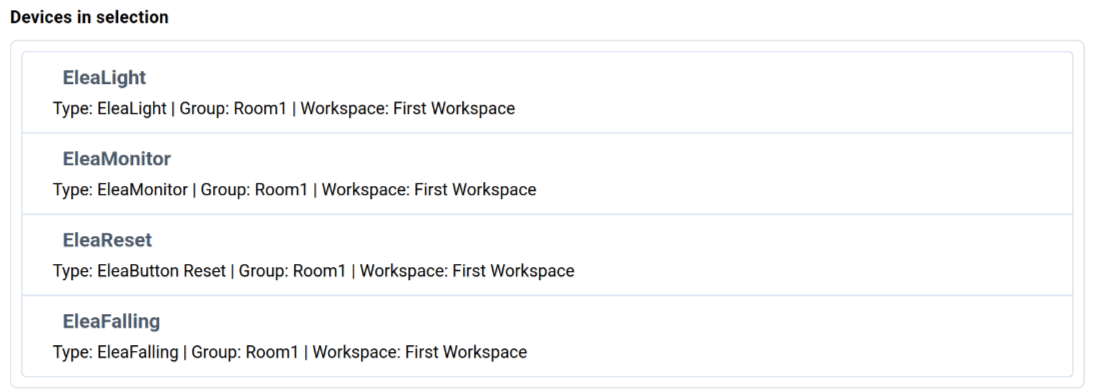 Dispositivos seleccionados - para todos los demás casos y reglas más complejas, por ejemplo cuando desea procesar eventos de varios dispositivos específicos.
